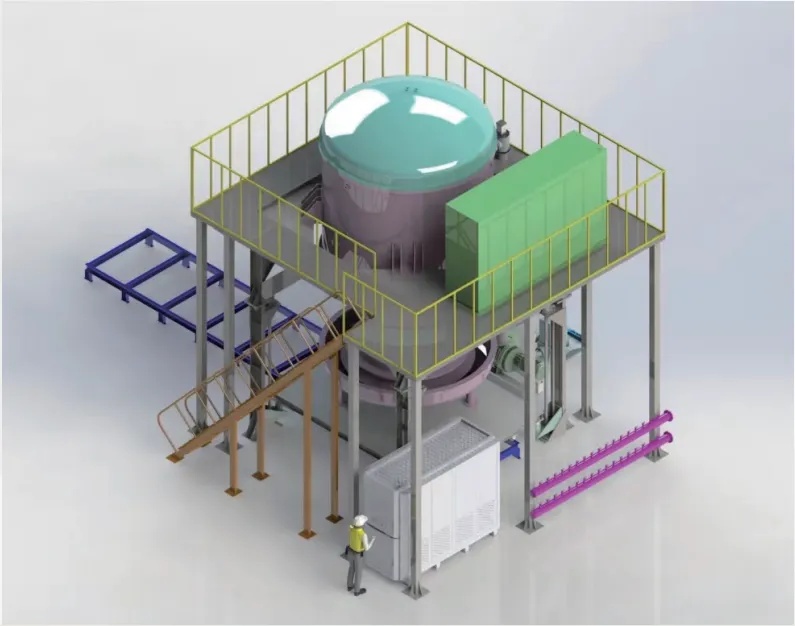 用途范圍:高純石英礦砂間續投料高溫焙燒及高溫下進行自動水淬工藝