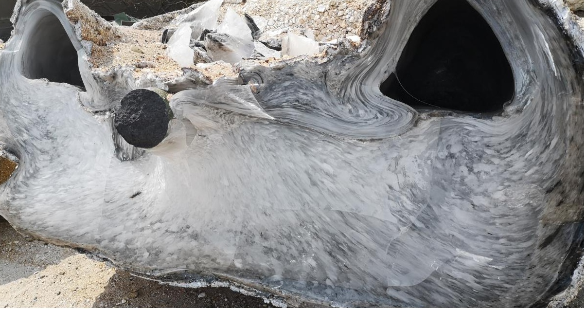熔融石英選用當地優質硅石(SIO2≥99%)作原料,通過電熔法高溫熔融(電熔溫度達1800-2200℃)后經自然冷卻制得玻璃狀非晶態二氧化硅。后經由人工分揀一、二、三、四級熔融石英塊,通過專用機械破碎、篩分、除鐵、研磨等多道工藝達到客戶需求的段砂、微粉等合格產品。