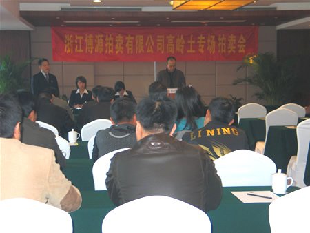 浙江博源拍賣有限公司12月2日在浙江富陽公開拍賣造紙行業(yè)所需的原材料--\\\"量大牌\\\"高嶺土刮刀粉產(chǎn)品。參加競買的有來至浙江省各地市的多家工廠、企業(yè)。經(jīng)過幾番激烈的競相舉牌,玉環(huán)縣科海隆貿(mào)易公司分別以840元/噸和790元/噸的價格成為本次標的物\\\"刮刀粉-1\\\"和\\\"刮刀粉-2\\\"的競得者。