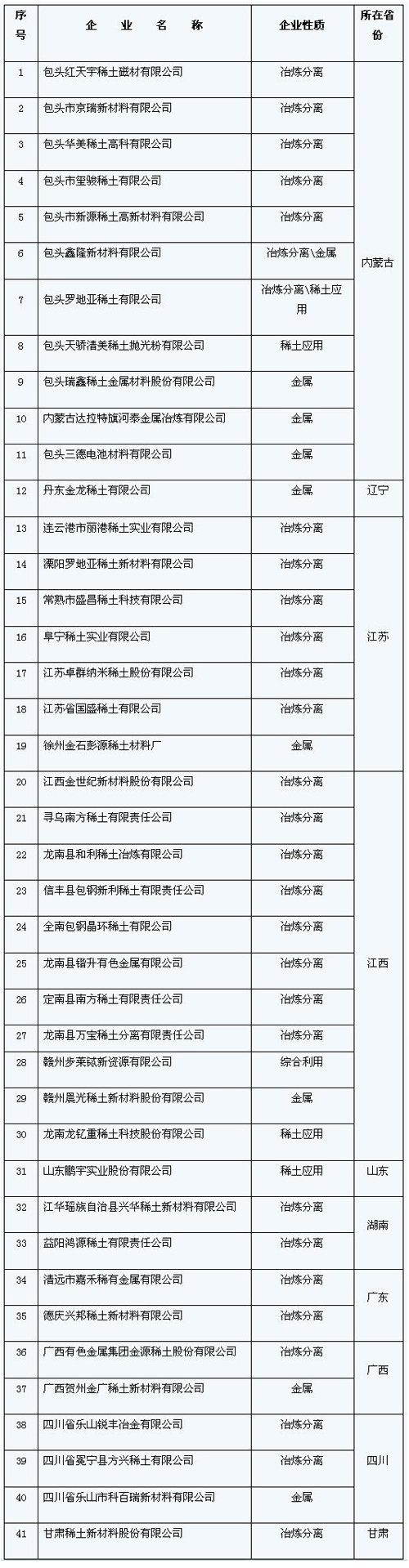 符合環保法律法規要求的稀土企業名單(第二批)