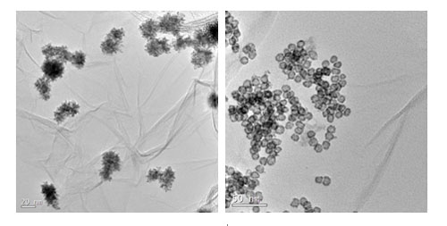 圖1 石墨烯擔載的樹突狀PtNi(d-PtNi/G) (左)與空心PtSnCo三元催化劑(右)