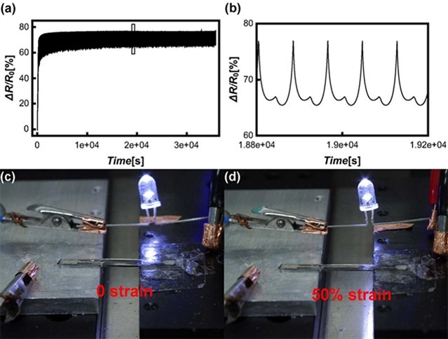 這種高導(dǎo)電性的透明彈性導(dǎo)體不僅可以作為可拉伸電子學(xué)的連接導(dǎo)線,而且可以作為可拉伸的光電子器件和儲能器件的電極材料,在柔性電子學(xué)和可拉伸電子學(xué)領(lǐng)域具有廣闊的應(yīng)用前景。