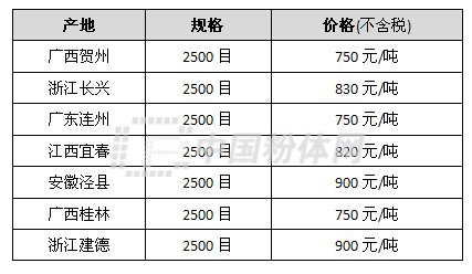 近日,中國粉體網對國內主要重鈣產區的2500目超細碳酸鈣產品價格進行了監控,與前期對比發現,價格無明顯波動,基本維持在750-900元/噸這一水平。