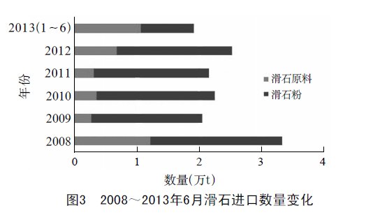 2013年中國滑石正在經歷30年來中國滑石最嚴重衰退,上半年滑石原料數量同比下降27.79%,滑石粉下降4.94%,綠泥石26.19%。連續12年的價格上漲,特別是過去5年連續10%的增長速度已經結束。中國滑石正在由總體供不應求再次轉向供過于求。和2008年金融危機情況不同的是,這次不但國際市場的需求萎縮,更大的問題是國內用量大幅縮小。滑石工業正在遭遇遠比2008年更加嚴峻的市場寒冬。