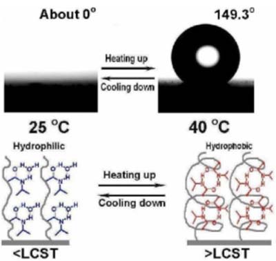 PNIPAAm修飾光滑表面的熱響應浸潤性