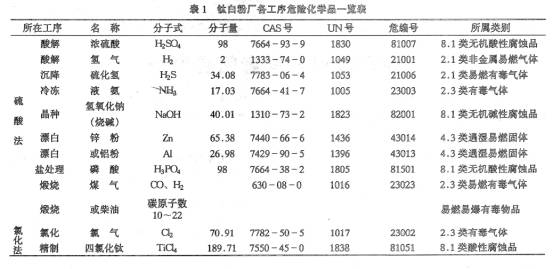 1 鈦白粉生產(chǎn)中的危險化學(xué)品