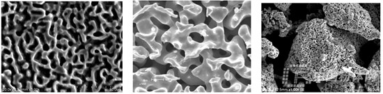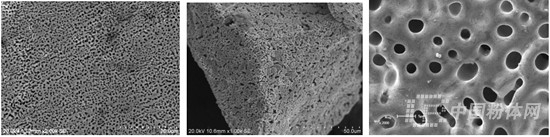 左:多孔316L不銹鋼。中:多孔不銹鋼粉。右:多孔鎳