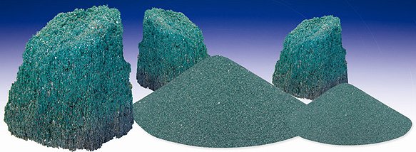 綠碳化硅制造方法同黑色碳化硅,但采用的原材料純度要求較高,也在電阻爐中2200°C左右的高溫下形成,綠色,呈半透明狀,六方晶形,其Sic含量較黑色為高,物理性能與黑色碳化硅相近,但性能略較黑色為脆,也具有較好的導熱性與半導體特性。