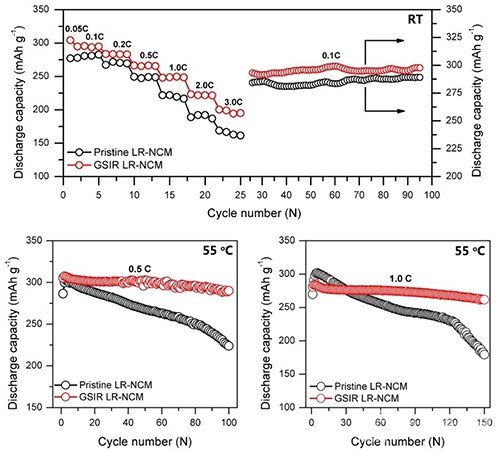 圖2. 富鋰錳基正極材料改性前后的電化學性能