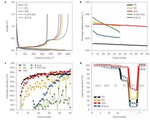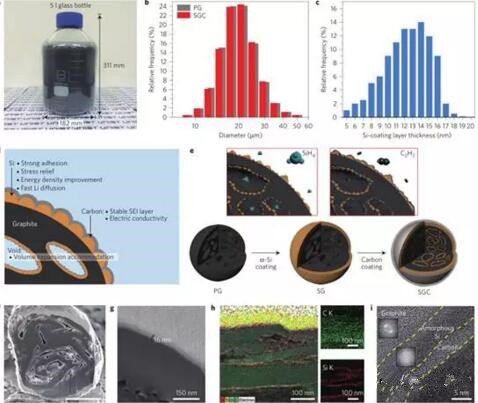 因此,使用CVD法制備的這種碳-硅-石墨納米復合材料,有望取代現有的石墨負極,成為新一代商用鋰離子電池負極材料。