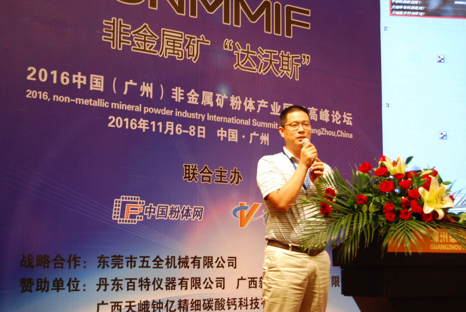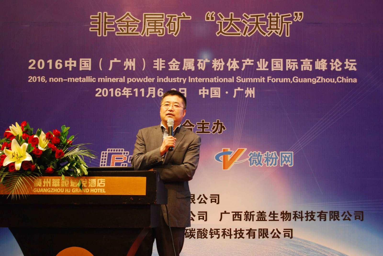 東莞市五全機械有限公司梁用全董事長做“重質碳酸鈣在PVC壓延膜行業中的應用”報告