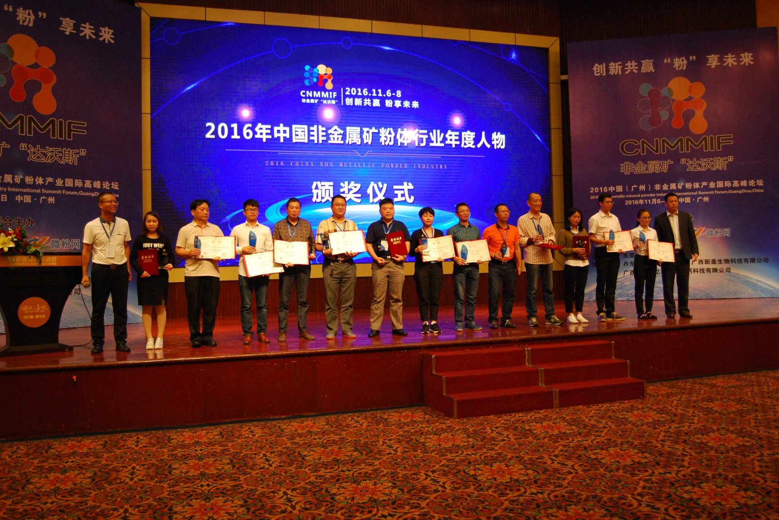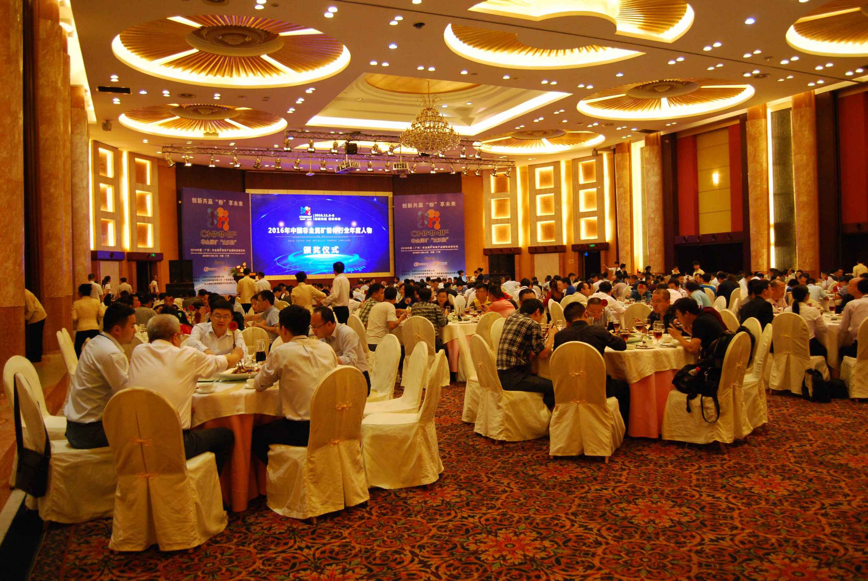 晚上七點半,主辦方舉辦了盛大的歡迎晚宴,大家齊聚一堂,共慶論壇的盛大開幕。宴會中對2016年中國非金屬粉體行業年度人物進行頒獎,并進行了現場抽獎活動。現場火爆,人氣爆棚。