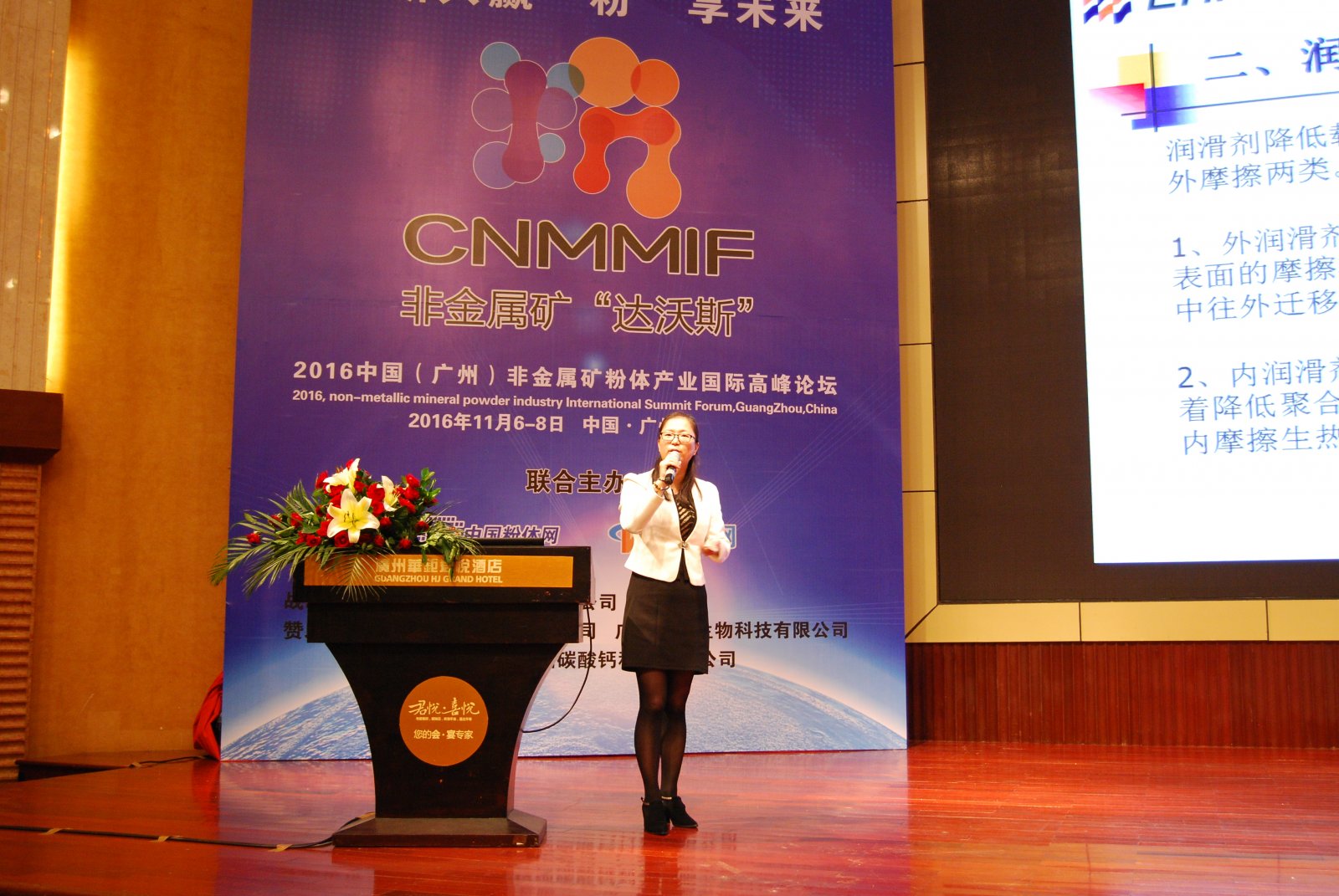 東莞市漢維科技股份有限公司王玉梅總工程師做“碳酸鈣母料幾種潤滑劑女效果研究”報告