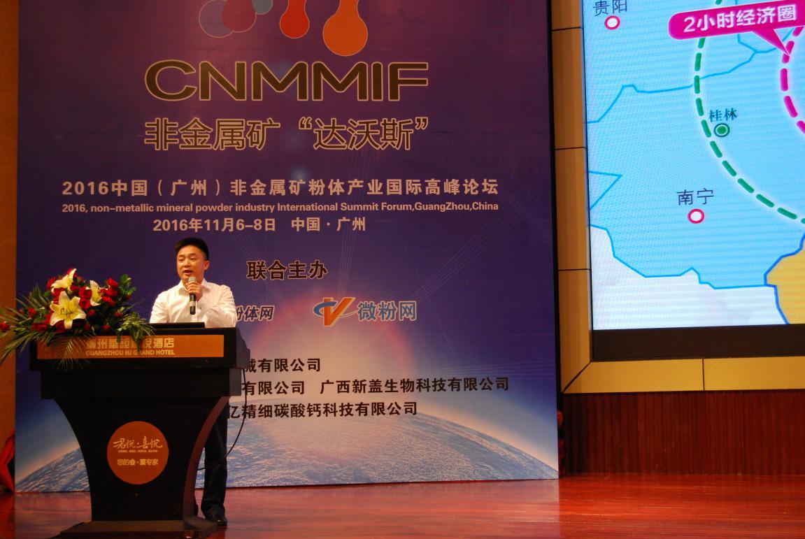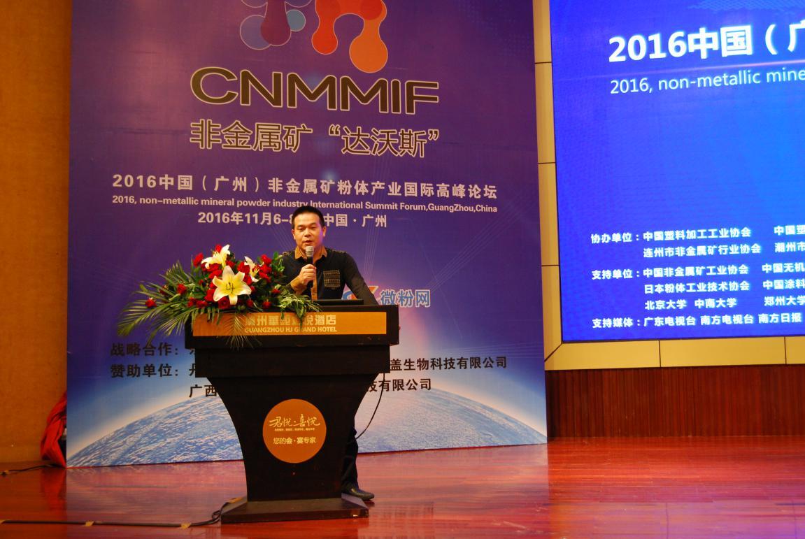 廣州市錦家礦業(yè)工貿有限公司陳錦總經理做“淺談非金屬礦的改性與增值”報告
