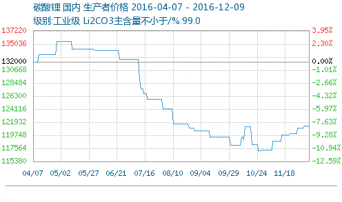 中國粉體網(wǎng)訊 據(jù)價格監(jiān)測:上周國內(nèi)碳酸鋰報價走穩(wěn)。工業(yè)級碳酸鋰均價121300元/噸,電池級碳酸鋰均價121300元/噸。工業(yè)級氫氧化鋰均價155500元/噸。