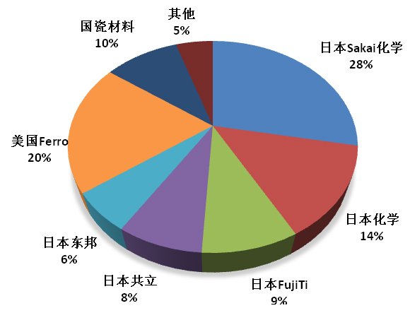 以片式多層陶瓷電容器(Multi-layer ceramic capacitors,MLCC)陶瓷粉體材料為例,其生產全球集中度較高。2013年全球MLCC陶瓷粉產量接近5萬t,并且正以每年8%的復合增速增長,國內以12%的復合速度增長。據《中國石油和化工經濟分析》報道,全球超過70%的MLCC陶瓷粉體材料由日本企業壟斷。日本堺化學(Sakai)是全球最大的電子陶瓷粉體材料生產廠商,美國Ferro及日本化學NCI分別列第2和第3位。