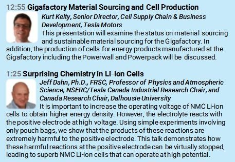 此前他一直從事三元層狀材料(NMC)鋰離子電芯(特斯拉優(yōu)選的電芯化學(xué)工藝)的研究。他的演講主題為“鋰離子電池中令人驚艷的化學(xué)反應(yīng)”——將討論如何停止有害的化學(xué)反應(yīng)從而提升其可用性。