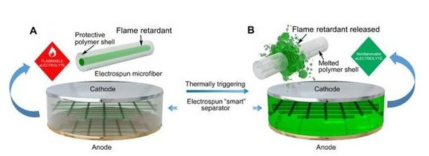 為了防止手機電池起火、爆炸等悲劇發生,來自斯坦福大學的研究人員開發出了一種新型鋰離子電池,這種電池使用了“阻燃防爆織物分離器”技術。用通俗的話來形容,這項技術就是在電池內部安裝了一臺“滅火器”。
