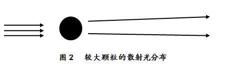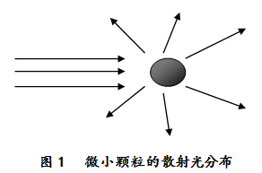 顆粒越細(xì),散射光的角度越小。當(dāng)顆粒幾何尺寸達(dá)到亞微米級(jí)別時(shí),大于90度散射角散射光將明顯增強(qiáng)。微小顆粒的散射光甚至在360度范圍內(nèi)都有分布,如圖1所示。