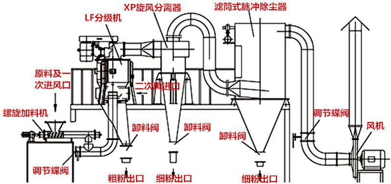 氣流粉碎機(jī)串聯(lián)分級(jí)機(jī)原理圖: