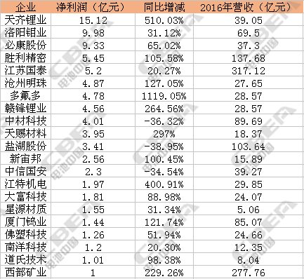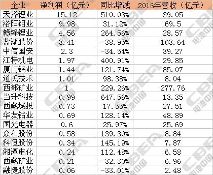 作為國內碳酸鋰上游龍頭企業,天齊鋰業2016年的“成績單”驚艷出爐。根據天齊鋰業公布的2016年報顯示,各項財務指標均達到了歷史新高水平。其中凈利潤達到了15.12億元,同比增長達510.03%;總營收達到39.04億元,同比增長109.15%。