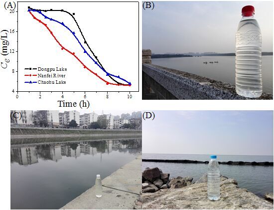 自從氧化石墨烯發(fā)現(xiàn)以來(lái),其優(yōu)異的物理化學(xué)特性使其得到了廣泛的應(yīng)用,然而其在合成使用以及排放過(guò)程中不可避免的造成了環(huán)境污染。陳長(zhǎng)倫課題組研究了氧化石墨烯納米材料在自然水(董鋪水庫(kù)、南淝河和巢湖)環(huán)境中的遷移行為。研究發(fā)現(xiàn)氧化石墨烯的沉降取決于水環(huán)境中的金屬陽(yáng)離子(鉀、鈣、鈉、鎂等)的價(jià)態(tài)和濃度,而自然水中的有機(jī)質(zhì)會(huì)穩(wěn)定氧化石墨烯。