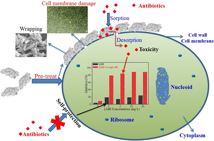 課題組進(jìn)一步研究了氧化石墨烯對(duì)細(xì)菌的毒性以及對(duì)抗生素殺菌能力的影響。該研究選取了三種常見(jiàn)抗生素(鹽酸林可霉素、氯霉素和硫酸慶大霉素)和兩種細(xì)菌(大腸桿菌和金黃葡萄球菌),發(fā)現(xiàn)氧化石墨烯對(duì)細(xì)菌的危害取決于氧化石墨烯的濃度和接觸時(shí)間,對(duì)抗生素殺菌能力的影響取決于氧化石墨烯與抗生素的相互作用力,并通過(guò)能量密度泛函理論計(jì)算研究了氧化石墨烯與三種抗生素之間的吸附能。該研究發(fā)現(xiàn)氧化石墨烯會(huì)破壞細(xì)菌細(xì)胞膜的完整性,而氧化石墨烯對(duì)抗生素的抗菌能力的影響取決于多種因素。如非生物因素(氧化石墨烯的物理化學(xué)性質(zhì)、抗生素的物理化學(xué)性質(zhì)、氧化石墨烯和抗生素的相互作用)和生物因素(如細(xì)菌的物理化學(xué)性質(zhì)、細(xì)菌對(duì)抗生素的敏感性、氧化石墨烯與細(xì)菌之間的相互作用等)。
