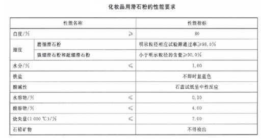 滑石粉在化妝品行業的應用對于其質量要求是很嚴格的,因為是直接接觸人皮膚的產品,所以質量必須符合要求才能使用。我國國家標準《滑石粉》(GB/T 15342-2012)對于“化妝品用滑石粉”,也要求“不得檢出”石棉礦物。