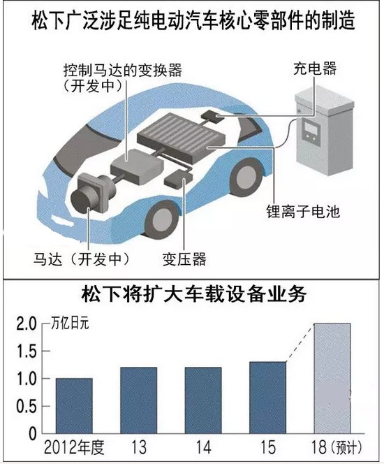 松下在汽車用電池、充電器、變壓器領域占有較高份額,并在推進馬達和控制設備的研究,希望將系統推廣向整車廠商,以促進純電動汽車行駛相關零部件的銷售。