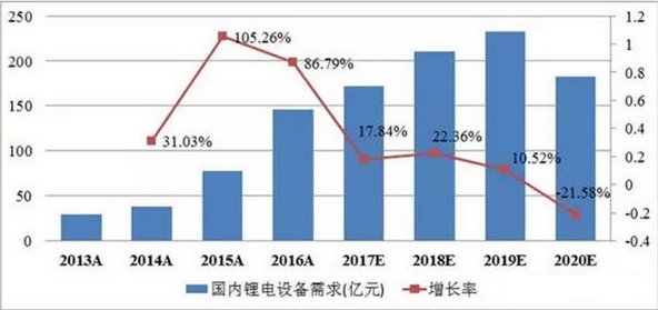 圖1 國(guó)內(nèi)鋰電設(shè)備需求預(yù)測(cè)