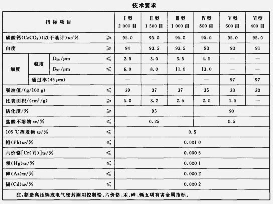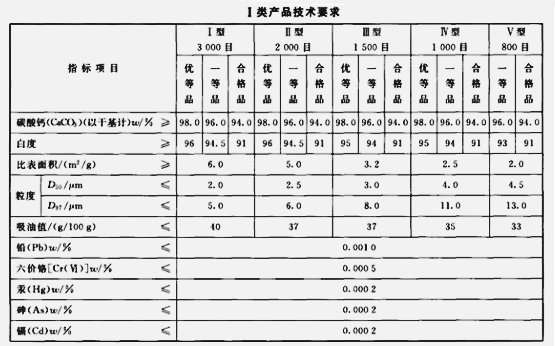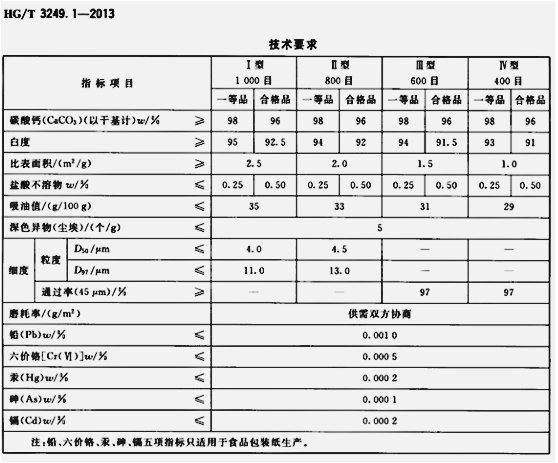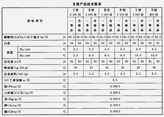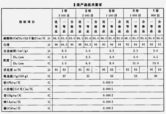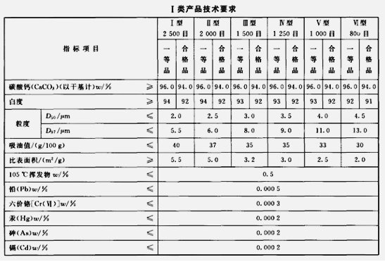 工業(yè)用重質碳酸鈣標準: