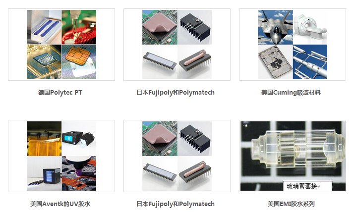 公司代理德國(guó)Polytec PT的膠粘劑和美國(guó)Aventk的UV膠水,Polytec是一家歷史悠久的德國(guó)企業(yè),在膠粘劑方面有深厚的積累,尤其是導(dǎo)電膠和導(dǎo)熱粘接,導(dǎo)熱灌封環(huán)氧方面有較多應(yīng)用。