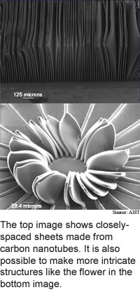 來自日本高科技工業(yè)技術(shù)學(xué)會的最新研究,將水引入普通碳納米管制造工藝中,生產(chǎn)出了又長,密度又高,并且垂直排列的純碳納米管。使用他們的技術(shù),已經(jīng)生產(chǎn)出了單壁碳納米管,長2.5毫米,純度為99.98%,其直徑只有一到三個(gè)納米。相對于過去常規(guī)使用的碳納米管培育技術(shù),新技術(shù)更加快捷、廉價(jià),能在培育過程中更有效地保護(hù)碳納米管不受損壞。并且它可保證培育過程有條不紊,培育出的碳納米管純度高,可應(yīng)用于許多領(lǐng)域,包括生物、醫(yī)學(xué)假體、化工、電磁學(xué)研究等等。