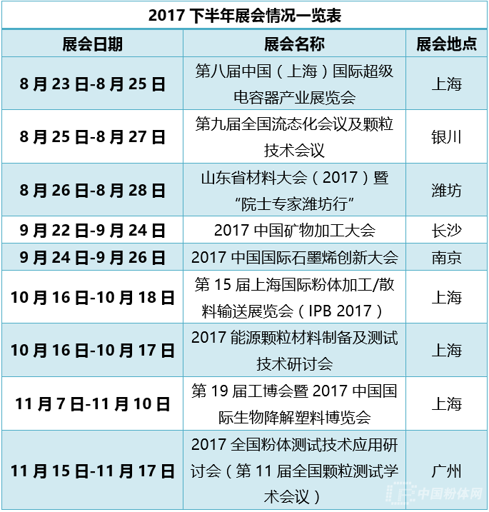 參加展會是粉體企業(yè)推廣和學(xué)習(xí)最好的機(jī)會。上半年已過,下半年豈容錯過。