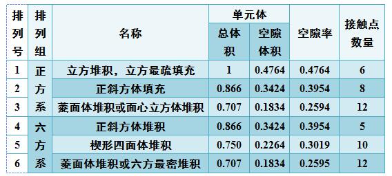 表1等徑球規則堆積的結構特性