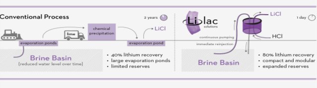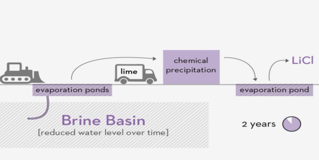 鋰是鋰離子電池的關鍵成分,主要發(fā)現(xiàn)在南美洲,中國和美國鹽堿地的鹽水中。傳統(tǒng)上,從單位提取鋰包括將鹽水轉(zhuǎn)移到大量的地上池塘; 一旦水蒸發(fā)出來,鋰就會與鹽分化學分離,這些鹽在景觀中被排出,數(shù)量足夠大,對植物和動物有毒。整個提取過程大約需要兩年時間,僅占據(jù)鋰電池的約50%,并排放已經(jīng)干燥的水景。