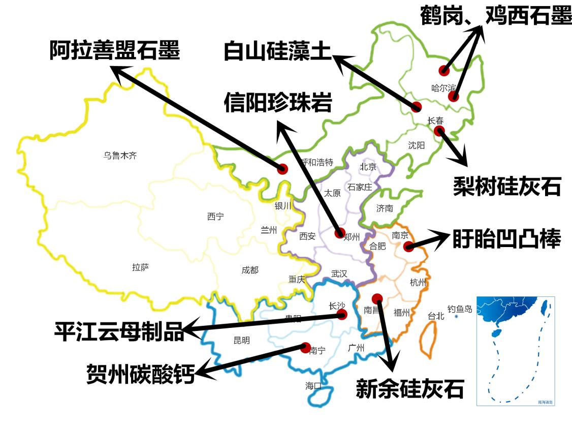 石墨、螢石、高嶺土、菱鎂礦、硅藻土、硅灰石、碳酸鈣等中藥非金屬礦產,依托資源產地逐步形成一定規模的采選加工基地,產業向集群園區集中呈現明顯發展趨勢。