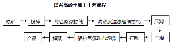 目前,優質煤系煅燒高嶺土大多采用干、濕結合,先磨后燒的生產工藝。