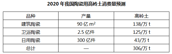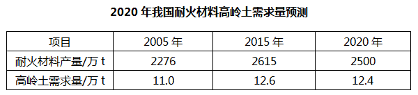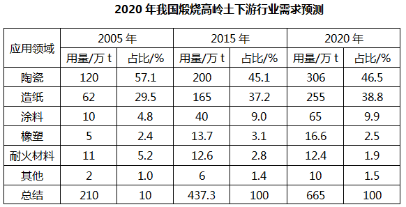 隨著我國產業技術的進步及加工工藝的不斷改進,下游產業對煤系高嶺土煅燒加工產品的需求將逐年上升,預計到2020 年,我國煤系高嶺土煅燒加工產品下游行業市場消費需求量將達到665萬t左右。