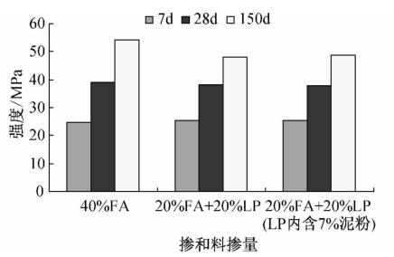 研究發現分別摻加40%粉煤灰和摻加20%粉煤灰、20%石灰石粉的C30混凝土,7d和28d強度基本相當,抗碳化性能基本相當。石灰石粉中一定的含泥量,對混凝土強度和抗碳化性能影響不大。