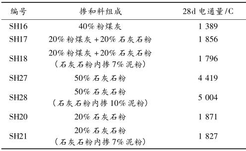 研究發現摻加石灰石粉對混凝土的抗氯離子滲透性有一定的不利影響,但摻量為20%時影響不大,一定的含泥量也不影響電通量的測試結果。當摻量達到50%時,混凝土抗氯離子滲透性能顯著降低,且10%的含泥量對測試結果也產生一定影響。
