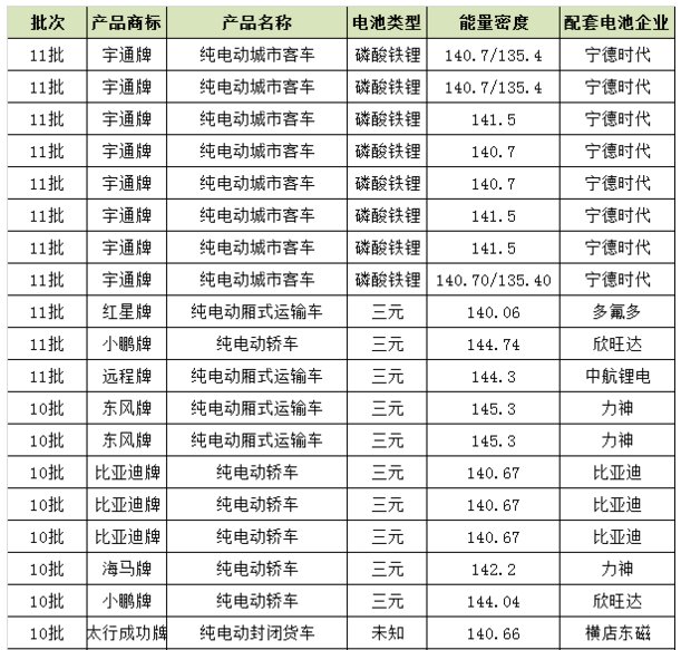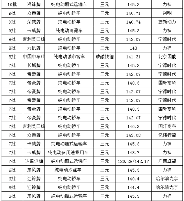 從技術路線來看,磷酸鐵鋰有9款,三元有37款,未知的1款。涵蓋的動力電池企業包括:寧德時代、比亞迪、力神、國軒高科、北京國能、中航鋰電、星恒電源、德朗能、卓能、欣旺達、捷新動力、創明、哈爾濱光宇、多氟多、妙盛、捷新動力、橫店東磁等。如下圖所示: