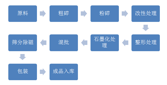 人造石墨是將骨料和粘結劑進行破碎、造粒、石墨化、篩分而制成。基本的工序流程是一致的。