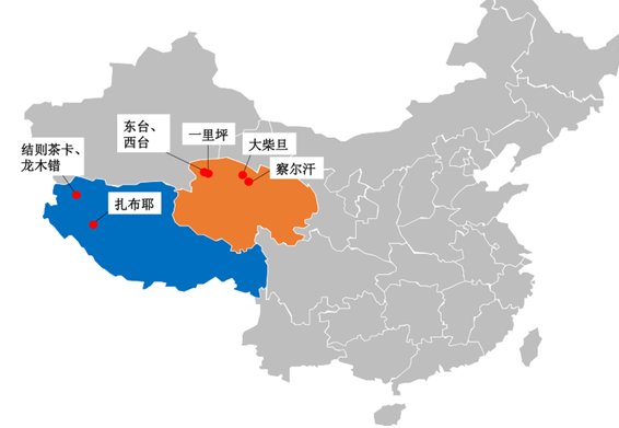中國鹽湖主要分布在青海和西藏。目前我國擁有 1500 多個鹽湖,主要分布在青海和西藏。其中已開發(fā)碳酸鋰資源的為青海的察爾汗鹽湖、一里坪鹽湖、東臺吉乃爾鹽湖、西臺吉乃爾鹽湖、大柴旦鹽湖,以及西藏的扎布耶鹽湖、西藏阿里地區(qū)的結(jié)則茶卡鹽湖和龍木錯鹽湖。各個鹽湖的儲量不同,其中以察爾汗鹽湖為首,儲量約 718 萬噸碳酸鋰,其次為西藏的扎布耶鹽湖,儲量約 217 萬噸碳酸鋰。