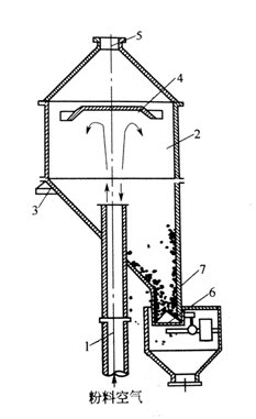 1-除塵器;2-氣固分離器;3-加料機(jī);4-鼓風(fēng)機(jī);5-加料斗