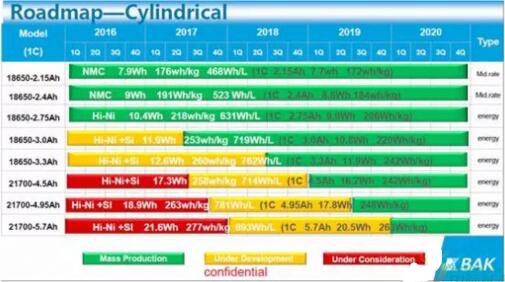 以下是比克動力電池產(chǎn)品技術及能量密度路線圖: