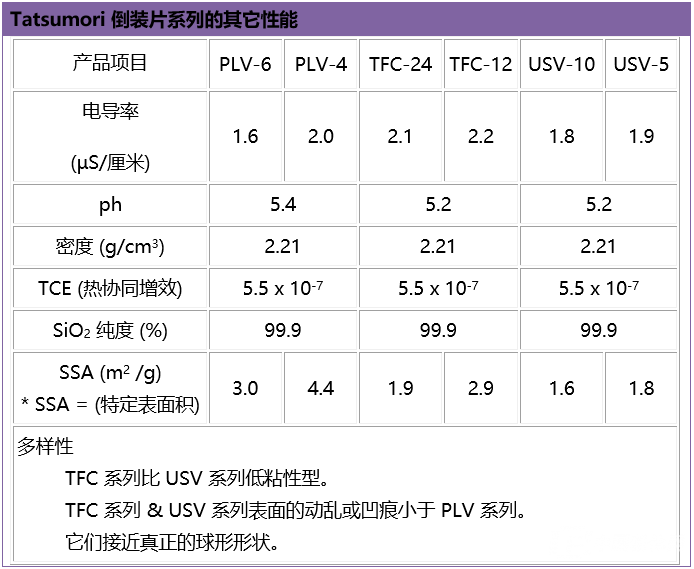 Tatsumori 一直在調查這個應用的填料。為了避免α粒子發射 (U、Tr) 引起的軟誤差, 他們采用了低α粒子發射型球形填料。