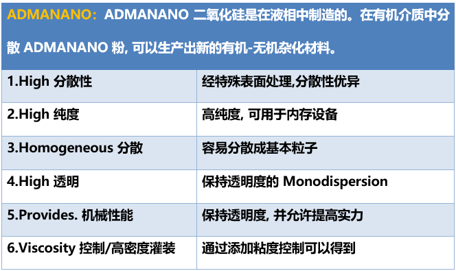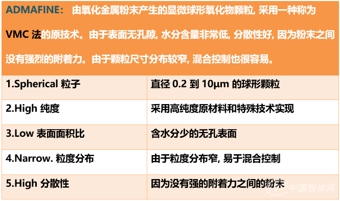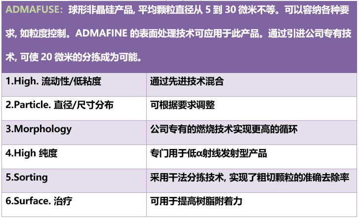 Admatechs 股份有限公司成立于1990年2月2日。主要生產和銷售球形顆粒二氧化硅、氧化鋁、氧化物陶瓷粉體及其二次加工產品。