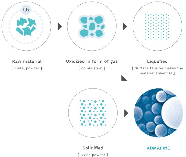 Admatechs 生產和市場的球形微粒命名為 "ADMAFINE" (二氧化硅和氧化鋁) 生產利用最初開發的專有技術。ADMAFINE 被用作高端工業產品的重要高性能代理, 包括半導體硅膠和日常用品。他們還開發了各種新的原創技術和產品, 或通過與客戶的合作, 為世界人民提供廣泛的服務。