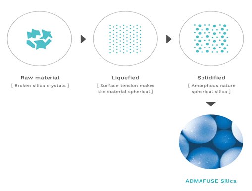 在熔融的方法中, 破碎的二氧化硅晶體被充電在熔化的熔爐中, 允許球體形成的表面張力。Admatechs 專業從事低放射性元素含量的高純度填料。我們的粒度控制技術使我們能夠滿足各種需求, 我們可以提供高循環的產品。